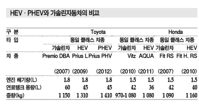 따라서 「Prius」는 하이브리드 자동차의 배기량을 크게 줄이지 않은 것으로 판단되고 있다.