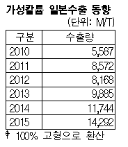 표, 그래프: <가성칼륨 일본수출 동향> <화학저널 2016/05/26> |