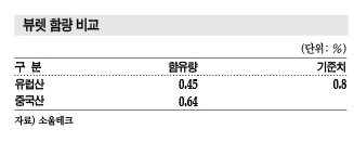 중국산은 불순물 함량이 비교적 높은 것으로 나타나 채용하면 3년 이내 SCR의 노즐과 머플러 막힘 현상이 80% 이상 발생하는 것으로 나타나고 있다.