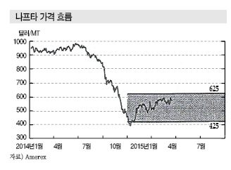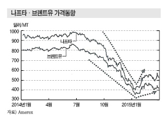 나프타는 2014년 상반기 공급부족에서 하반기에는 국제유가 폭락과 함께 공급과잉으로 전환됐고, 2015년 들어 국제유가가 반등함에 따라 나프타 가격도 동반 상승하면서 가수요가 늘어나 공급부족으로 전환됐다.