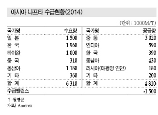 아시아 나프타 시장은 최근 수요가 크게 늘어 공급부족 상태로 부족물량을 중동과 유럽에서 공급받고 있다.