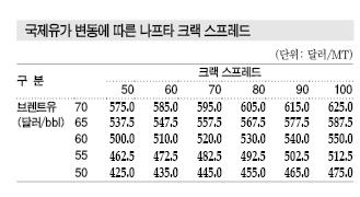 이슬람의 영향 등 불확실성이 많지만 브렌트유가 50-70달러 사이에서 움직일 것으로 예측하면 크랙 스프레드가 50-100달러 사이에서 움직이고 수급이 밸런스를 나타내면 나프타 가격은 425-625달러 범위에서 변동할 것으로 예측되고 있다.