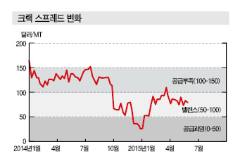 그러나 공급부족도 일시적인 현상으로 수급밸런스를 맞춰가고 있으며 2015년 하반기에는 수급밸런스에 가까운 상태로 전환돼 크랙 스프레드가 50-100달러 사이에서 움직인 것으로 나타나고 있다.