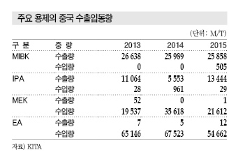 용제는 한-중 FTA 체결에 따라 중국산 유입이 증가할 것으로 예상된다.