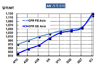 표, 그래프 : < AN 가격추이 > <화학저널 2016/06/09> |