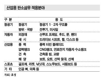 탄소섬유는 비강도가 우수해 항공기·우주선 소재로 사용되고 있으며 최근 자동차 경량화 트렌드가 급부상하면서 관심이 집중되고 있다.