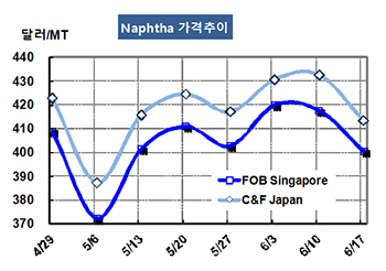 CFR Japan 413달러로 20달러 떨어져 … 스팀 크래커 가동률 양호