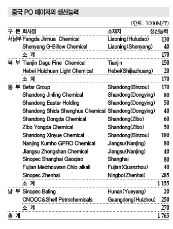 중국기업은 PO를 소비하기 위해 대부분 다운스트림 생산설비를 보유하고 있는 것도 차별요소로 대두되고 있다.