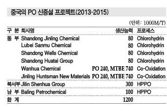 PO는 글로벌 생산능력이 2012년 934만3000톤, 생산량은 758만6000톤으로 가동률이 81% 수준에 불과했으며 아시아, 서유럽, 북미에 생산이 집중된 것으로 나타났다.