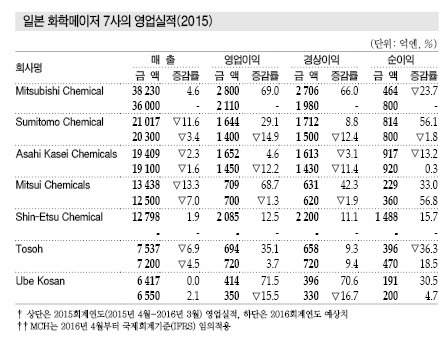 메이저7, 2015년 영업실적 개선 … 기능수지·의약 직격탄 우려