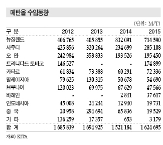삼성물산, LG상사, SK네트웍스 등 무역상들은 2015년 메탄올 가격하락으로 수익성이 악화된 것으로 파악됐다.