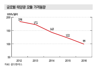 시장 관계자는 “글로벌 태양광산업이 성장함에 따라 경쟁도 치열해지고 있어 발전효율을 높이지 못하는 모듈 생산기업은 도태될 수밖에 없다”고 강조했다.
