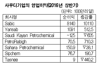 표, 그래프: <사우디기업의 영업이익(2016년 상반기)> <화학저널 2016/08/19> |