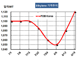 FOB Korea 1120달러로 40달러 올라 … Shell 가동률 부진도 영향