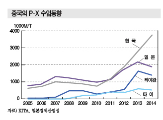 하지만, 국내 P-X 시장은 높은 중국의존도가 양날의 검으로 작용하고 있다.