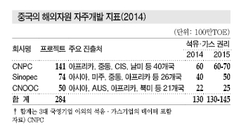 표, 그래프 : <중국의 해외자원 자주개발 지표(2014)><중국의 1차에너지 소비동향><중국의 에너지 수급현황(2014)><중국의 원유 수입선 변화><미국·중국의 석유·액체연료 수입량 비교>
