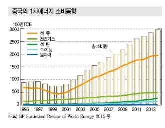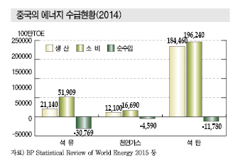 중국은 경제성장률이 7% 미만으로 둔화되고 있으나 석유·천연가스 소비량은 안정적으로 증가해 1차 에너지 공급부족이 심화되고 있으며, 석유를 비롯한 에너지 자원의 해외의존도가 높아지고 있다.