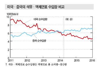 반면, 미국은 셰일(Shale) 혁명의 영향으로 셰일오일 생산이 급증함에 따라 석유 수입의존도가 낮아지고 있다.
