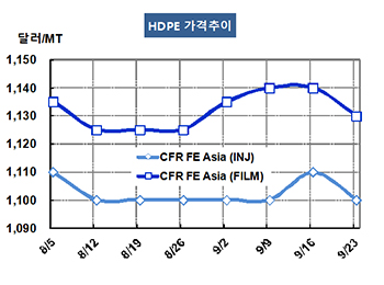 [석유화학] HDPE, 동북아 약세 속 보합세… | 2025-09-15 | ||