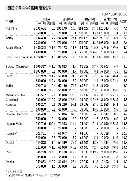 매출액도 4499억엔으로 1.4% 늘어나며 사상 최대치를 기록했으나 유기합성, 합성수지 등 2개 사업은 매출이 줄었다.