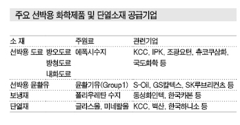 이에 따라 선박용 도료, 윤활유 및 윤활기유 등 선박관련 화학제품 생산기업들도 수익성이 동반 하락할 것으로 우려되고 있다.