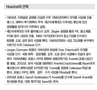 의약·농약 분야에 전략적으로 투자하기로 결정한 Hoechst는 비 핵심사업을 매각하며 투자자금을 확보하기 시작했으며 화학강국의 해체가 급격하게 진행됐다.