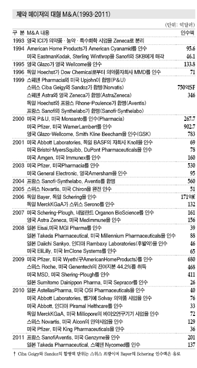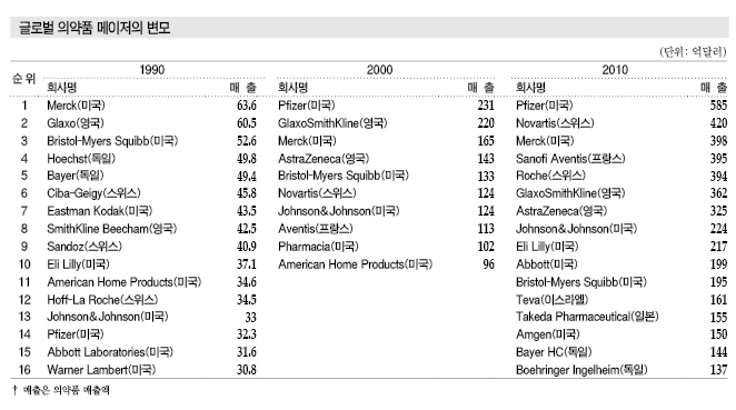 1990년 이후 약 20년 동안 유럽 및 미국 화학 메이저들은 의약품 사업을 대형 제약기업에게 넘기는 방향으로 구조재편을 실시했다.