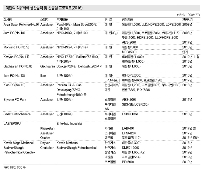 Tamin Petroleum & Petrochemical Investment (TAPPICO)도 2015년 10월 경제제재 해제 이후 추진하는 석유화학 프로젝트를 발표했다.