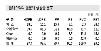 혼합 폐플래스틱은 수증기 분해 생성물이 나프타(Naphtha)의 수증기 개질 생성물과 유사하다는 연구결과도 있다.