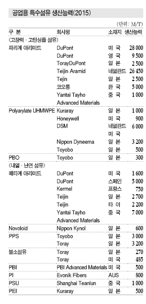 글로벌 아라미드섬유(Aramid Fiber) 시장은 일본, 유럽, 미국기업이 주도하고 있으나 최근에는 한국, 중국기업들이 사업을 확대하며 경쟁이 치열해지고 있다.