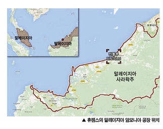 휴켐스는 2015년 8월부터 말레이지아 Sarawak 소재 화학단지에 암모니아 60만톤 공장을 건설하고 있으며 2018년까지 완공하고 2019년 상반기부터 상업화를 본격화할 예정이다.