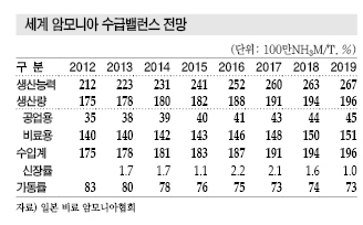 또 휴켐스가 2019년 국내시장 공급을 목표로 말레이지아에 암모니아 공장을 건설하고 있어 경쟁과열이 불가피해지고 있다.
