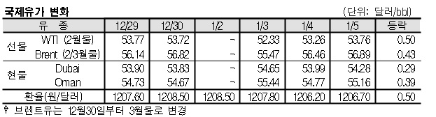 1월5일 국제유가는 사우디의 감산 이행, 미국 달러화 약세 등으로 상승했다.