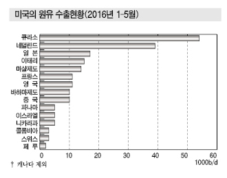 미국산 원유는 2016년 2월 말 재고가 5억1800만배럴에 육박해 수출이 불가피했던 것으로 파악된다.