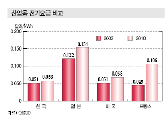 또 미국, 프랑스, 독일, 영국, 일본 등 대다수 선진국들이 산업용 전기요금을 주택용보다 낮게 책정하고 있으나 한국은 산업용 전기요금의 상대가격이 높은 편이라고 주장했다.