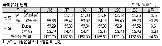 1월23일 국제유가는 미국 시추리그 수가 증가한 영향으로 하락했다.