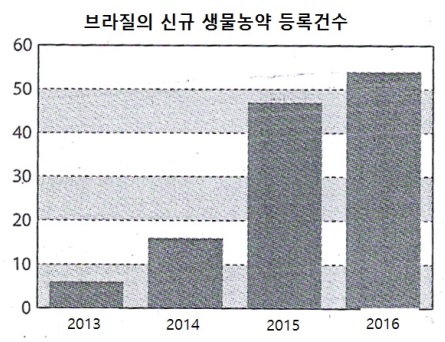 브라질 생물농약 시장이 성장세를 나타낼 것으로 예상되고 있다. 표, 그래프: <브라질의 신규 생물농약 등록건수> <화학저널 2017/01/31> |