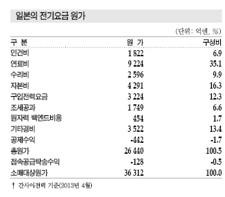 국제유가와 환율은 개정 신청 직전 3개월(2013년 7-9월)의 무역통계를 참조했으며, 주요 화력발전 연료는 석유, LNG(액화천연가스), 석탄으로 평균 연료가격을 kl당 4만1600엔으로 산정했다.