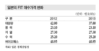 일본은 전력기업이 재생에너지 설비로 발전된 전기를 매입하도록 의무화하는 FIT(발전차액지원제도)를 2012년 7월부터 시행하고 있다.