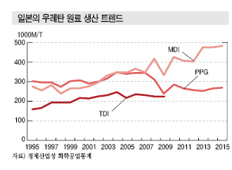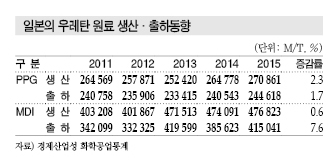 일본의 2015년 PMDI 수입은 3만7559톤으로 3.2% 줄었다.