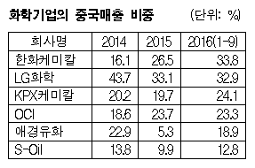 한화‧LG, 중국매출 비중 33-34% 달해 … 롯데케미칼은 4.7%에 불과