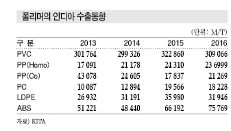 LDPE는 인디아 수출량이 2013년 2만6932톤, 2014년 3만1191톤, 2015년 3만5980톤으로 증가했고 2016년에는 3만1946톤을 기록했다.
