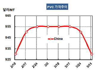 CFR China 930달러로 20달러 하락 … 카바이드 PVC 가동률 상승으로