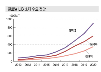 특히, LiB 소재 시장이 전체적으로 높은 성장세를 지속할 것으로 예상됨에 따라 주목된다.