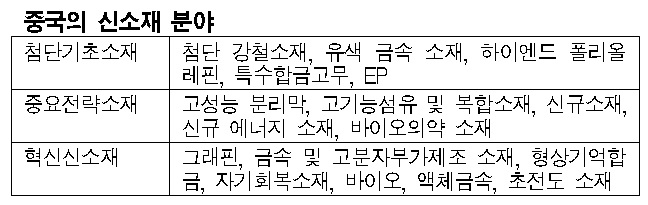 중국이 2020년까지 신소재의 자급률을 70%까지 끌어올릴 계획이다. 표, 그래프: <중국의 신소재 분야> <화학저널 2017/04/14> |