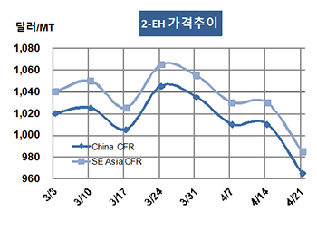 표, 그래프:<2-EH 가격추이> <화학저널 2017/04/28> |