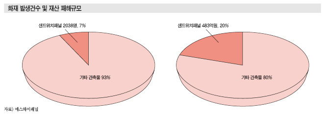 에스와이패널 오재성 고문은 “샌드위치패널은 국내 건축물의 화재원인 비중이 7%에 불과하나 재산피해액은 20%에 육박한다”고 밝혔다.