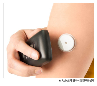 Abbott의 연속식 혈당측정센서 「FreeStyle Libre」는 팔뚝에 동전 크기의 작은 패치를 부착해 혈액채취 없이 2주 동안 실시간으로 혈량을 측정할 수 있는 것으로 파악되고 있다.