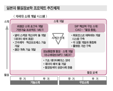 중앙부서는 2014년 전략적 이노베이션 창조 프로그램(SIP)를 시작했다. 11개 프로젝트로 구성돼 있으며 혁신적 구조소재 가운데 물질통합(Materials Integration)으로 불리는 활동이 포함돼 있다.