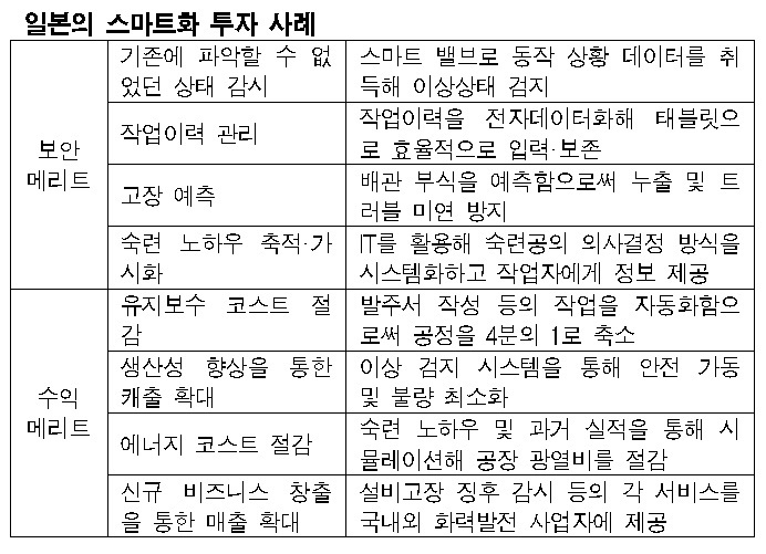 표, 그래프: <일본의 스마트화 투자 사례> <화학저널 2017/05/26> |